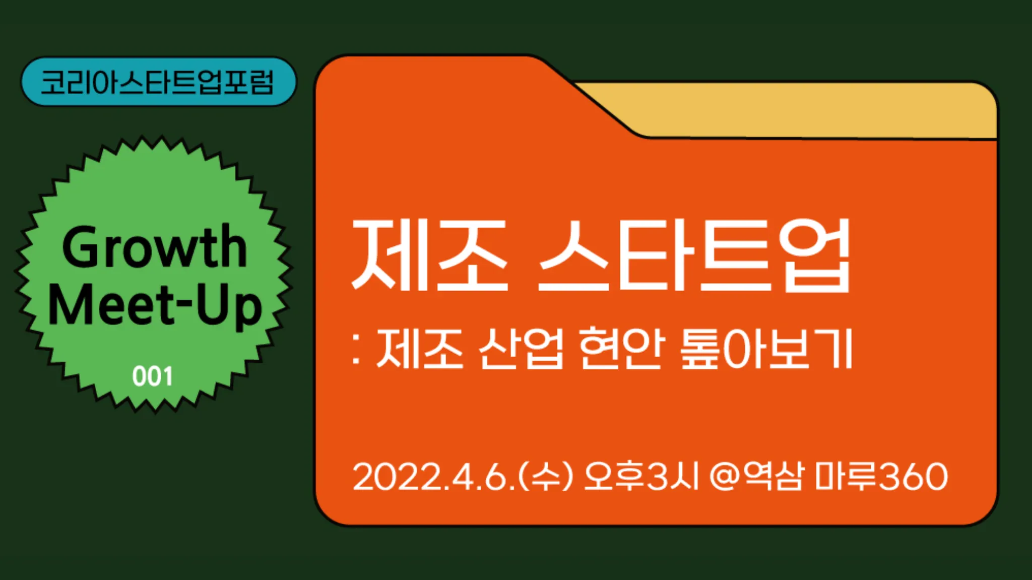 지난 2022년 4월 6일, ‘Growth Meet-Up : 제조 스타트업 제조 산업 현안 톺아보기’이 마루180 지하 이벤트홀에서 진행되었습니다.