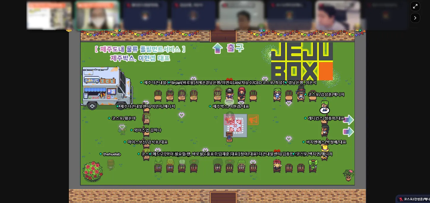 21년 8월 31일, Growth Meet : Business Talk 제주편이 '제주다운 스타트업 생태계 엿보기(feat. 괸당문화)'를 주제로 진행되었어요! 한땀 한땀 정성들여 만든 가상 제주도에 참가자들이 속속 도착했습니다.