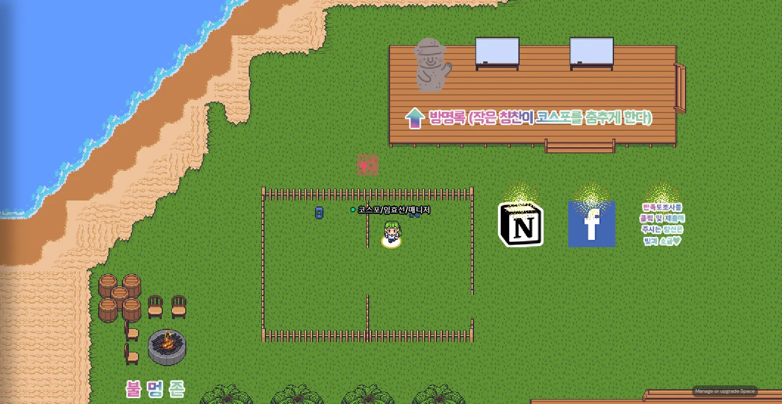 '방명록 존'과 코리아스타트업포럼 공식 페이지들! 불멍존에선 장작 타는 소리가 난답니다