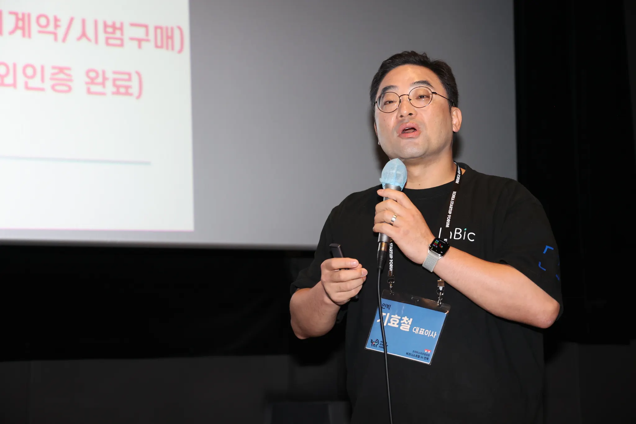 제일 먼저 발표를 시작한 곳은 칼렛바이오의 이종혁 본부장이였습니다. ‘스마트 패키징 솔루션 플랫폼’을 서비스하는 칼렛바이오의 발표 현장을 살펴보시죠!