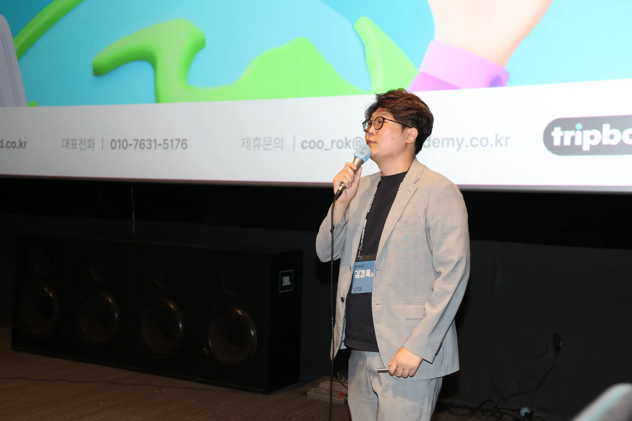 굿모닝 러닝클럽을 책임진 문카데미 김경록 대표가 네번째 발표를 맡았습니다. 트립보드는 해외 출장/그룹 여행 예약 및 운영관리 SaaS입니다.