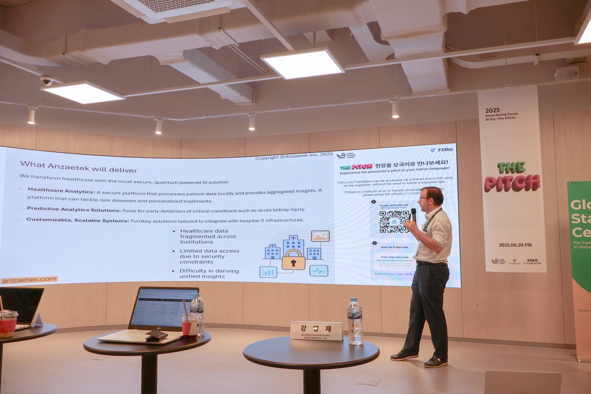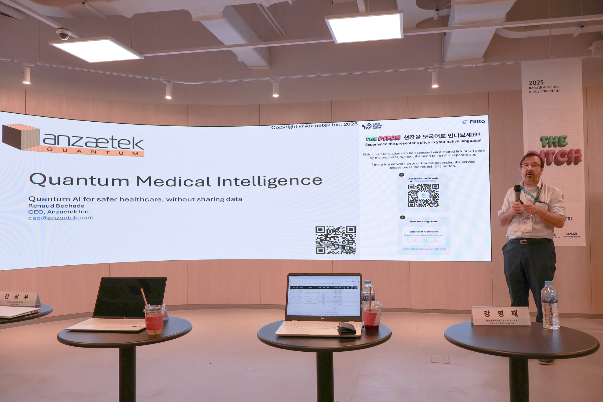 두 번째 발표 기업인 <Anzaetek>은 퀀텀 머신러닝과 연합학습 기술을 중심으로 의료, 라이프사이언스, 금융 등의 분야에서 AI 솔루션 개발중인 스타트업입니다!