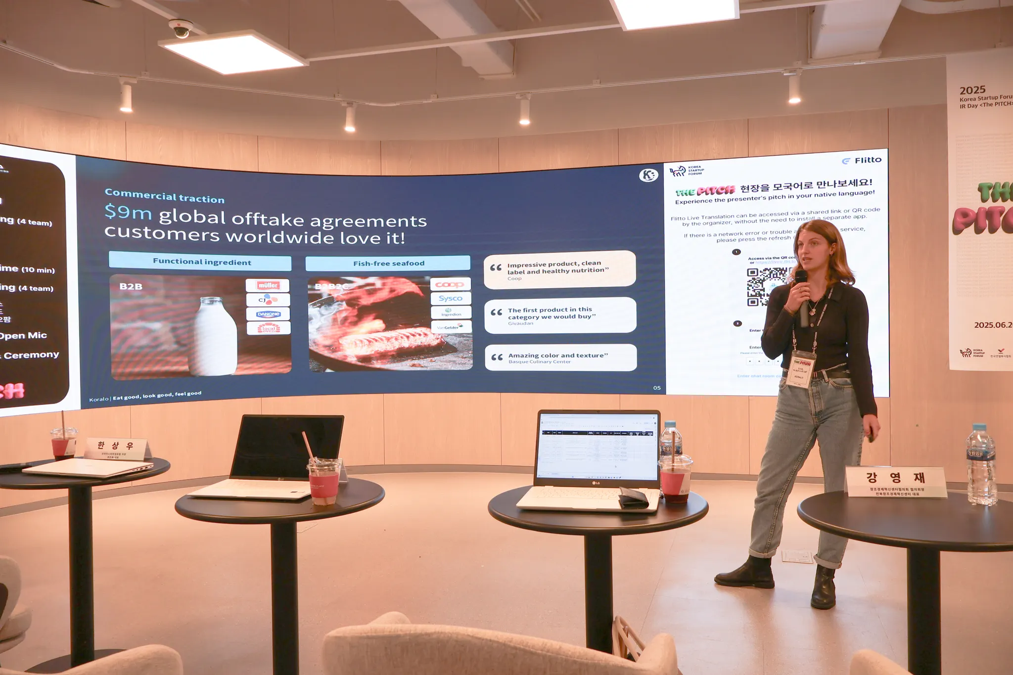 첫 번째 발표 기업인 <Koralo>는 친환경 해산물 대체식품을 개발하는 기업으로, 독일 뮌헨에 기반을 둔 푸드테크 스타트업입니다!