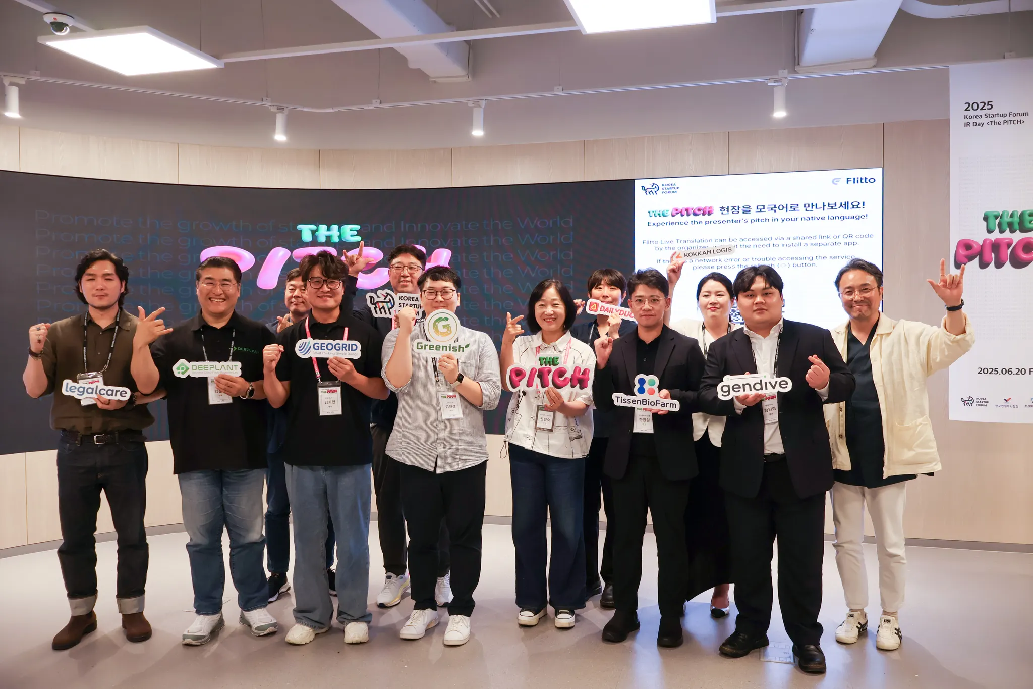 마지막으로 모든 피칭 기업분들을 모셔서 단체사진 촬영시간이 있었습니다.ᐟ 찰칵.ᐟ