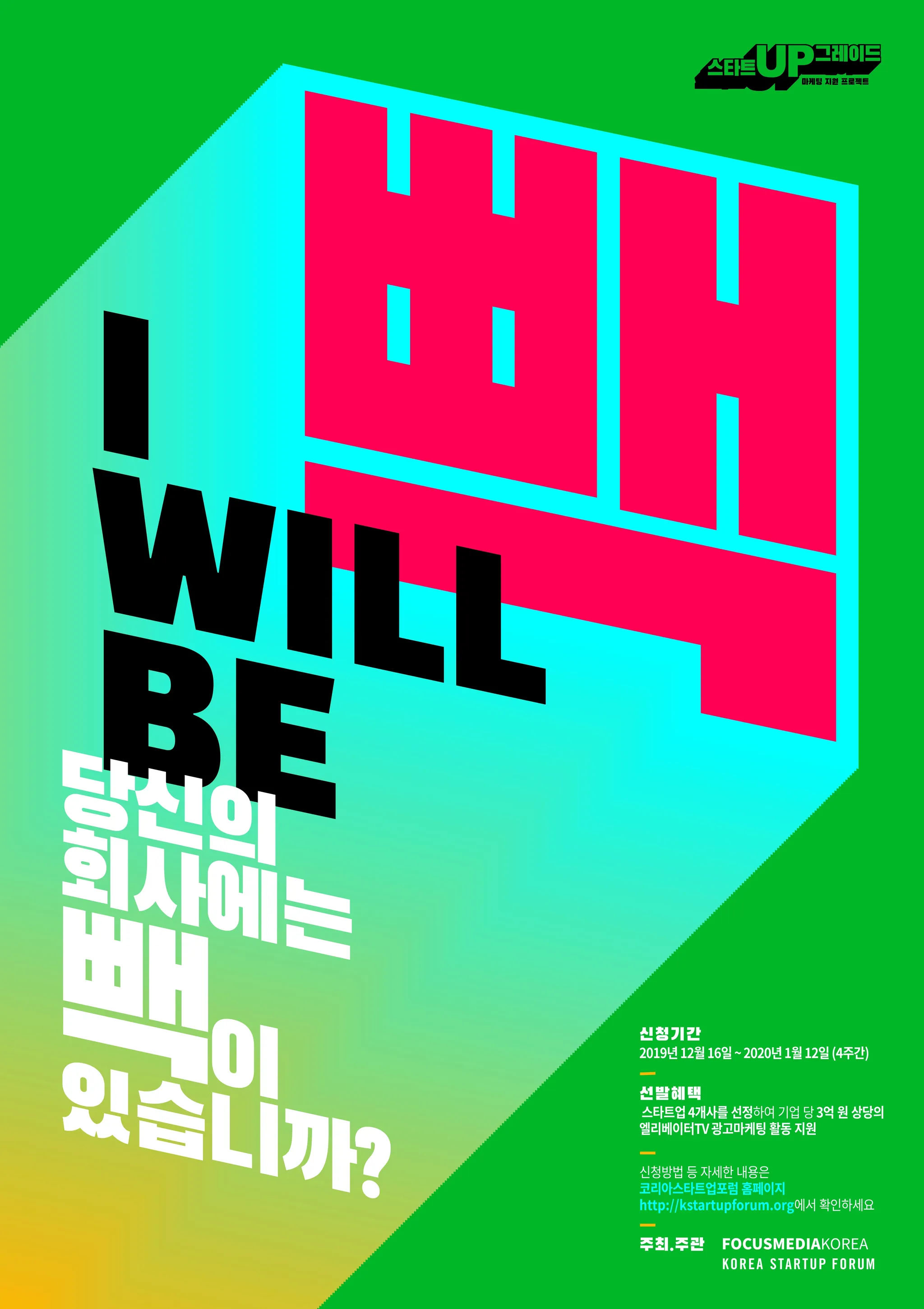 이번 I WILL BE 빽 시즌2는 스타트업 세 팀을 선발, 기업당 4억 2천만원 상당의 ‘마케팅 콘텐츠 기획& 제작부터 서울-수도권역 엘리베이터TV에 14주간 광고 송출’을 지원하는 혜택으로, 지난 시즌1보다 기업별 1억원 이상의 밸류를 추가 지원합니다!