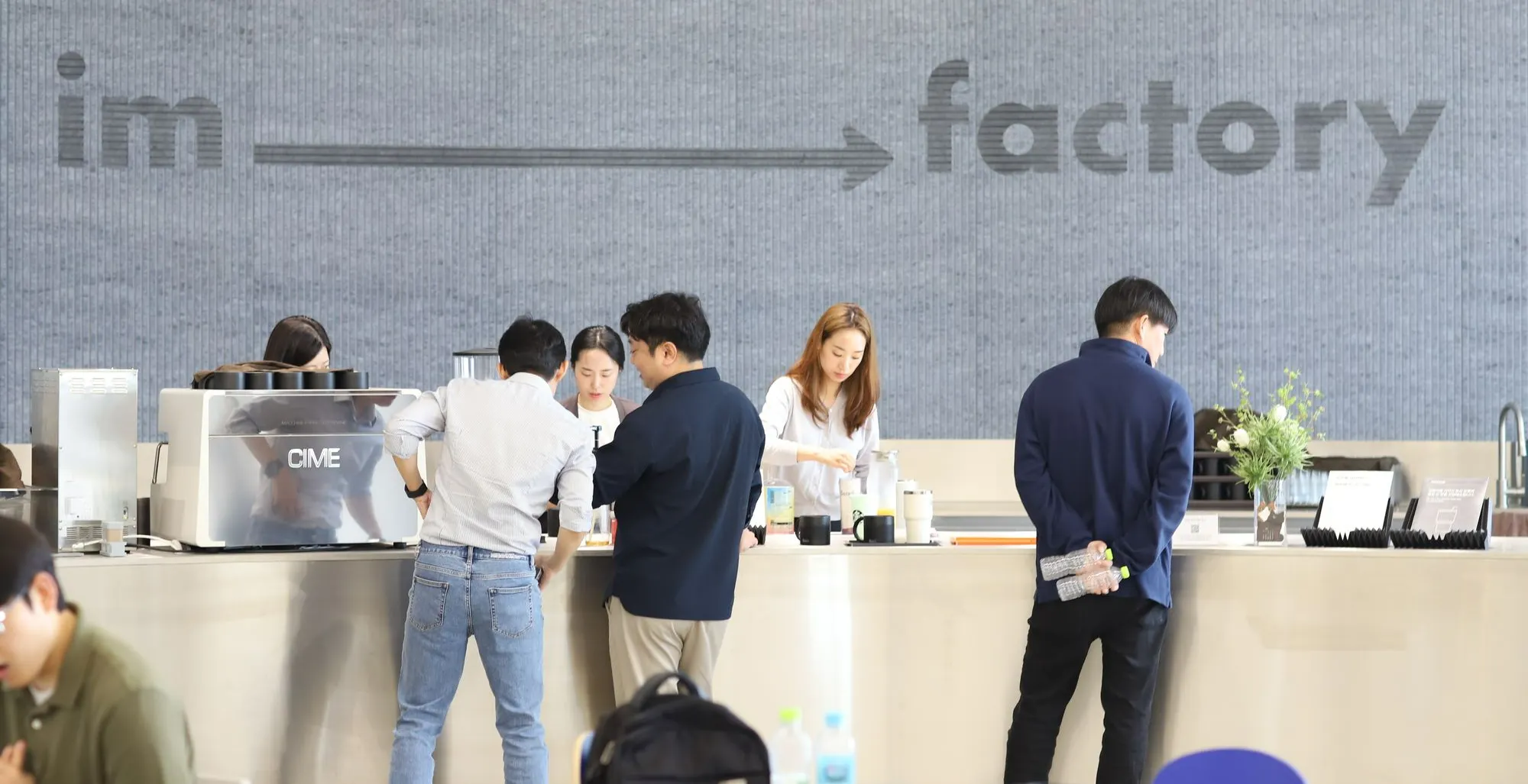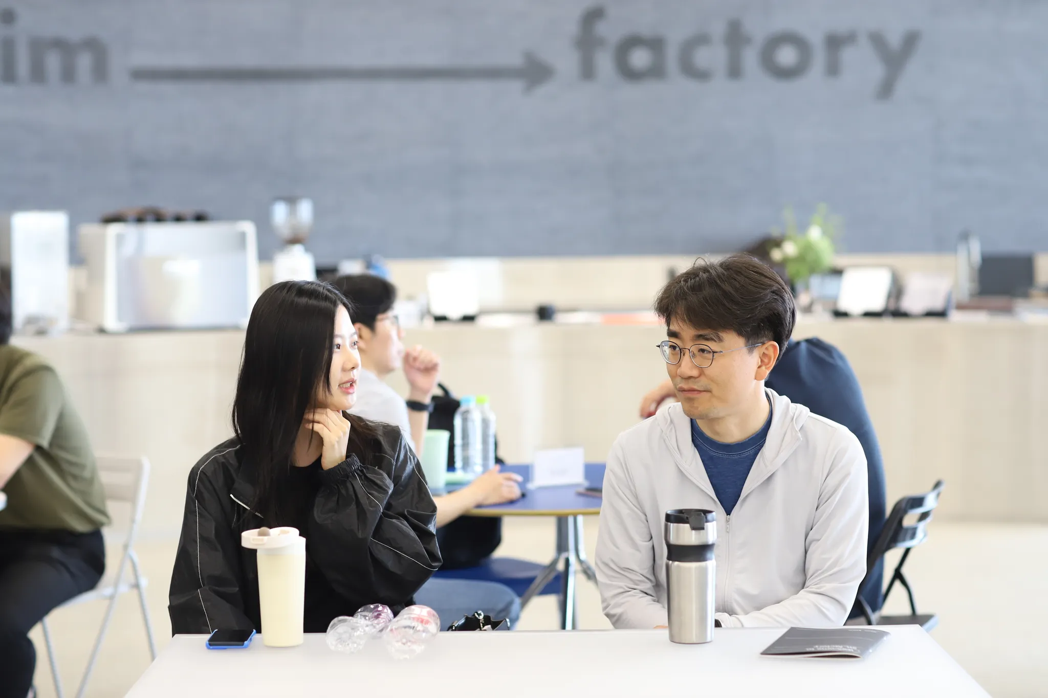 금요일 이른 아침, 서울·부산·울산 등 전국 각지에서 출발한 회원사들이 서해안이 가까운 경기도 화성시 우정읍에 모였어요. 사방이 탁트인 아이엠팩토리 4층 라운지에 모여 수퍼빈에서 준비해주신 웰컴 커피를 마시며 반가운 인사를 나누었습니다.
