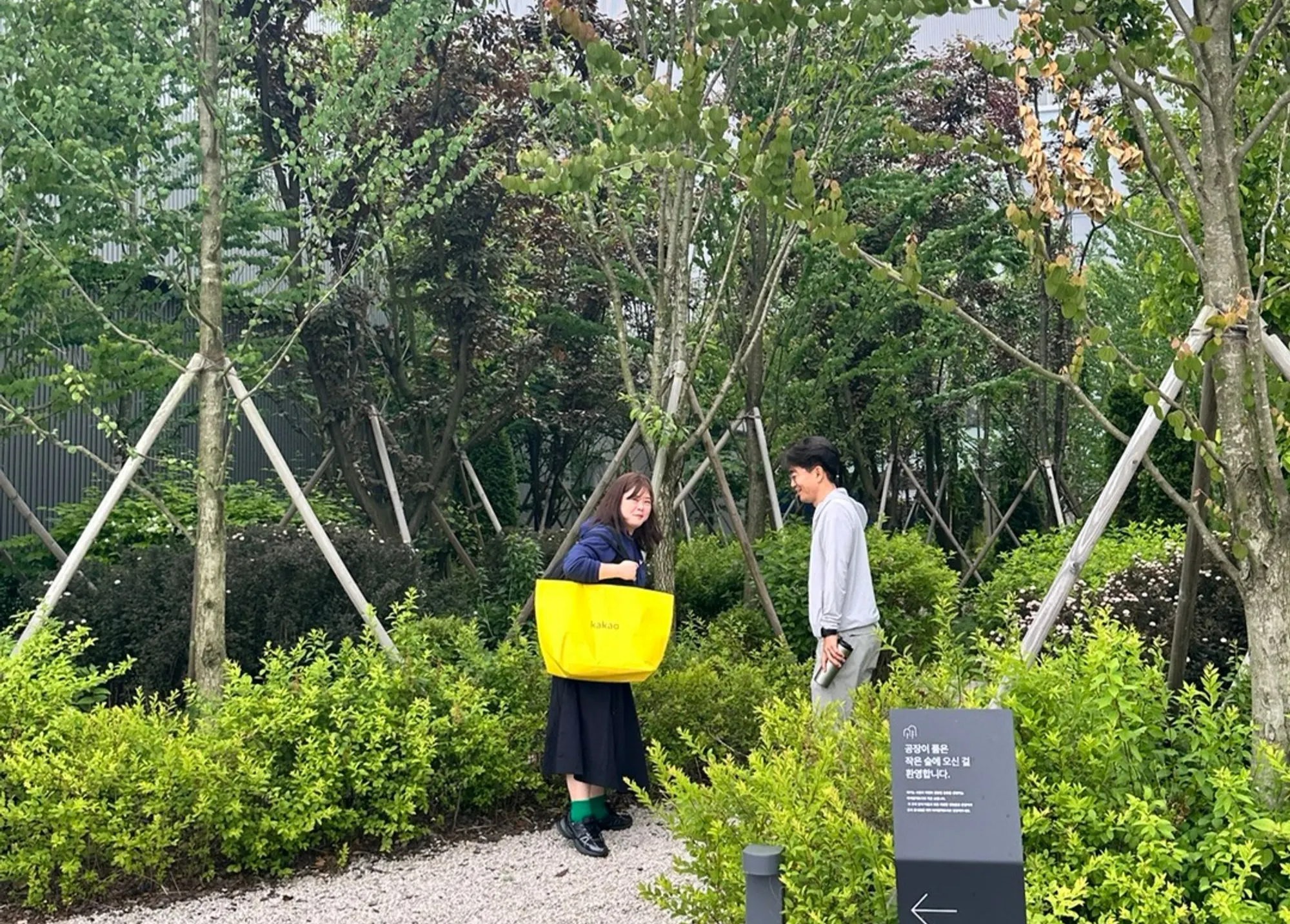 ‘아이엠팩토리’는 공장단지 속 멋진 미술관처럼 위치해 있었어요. 재건축 아파트 단지에서 버려질 위기에 처한 나무들을 심은 작은 숲을 지나 공장 설비와 문화공간이 있는 본동에 들어섭니다.