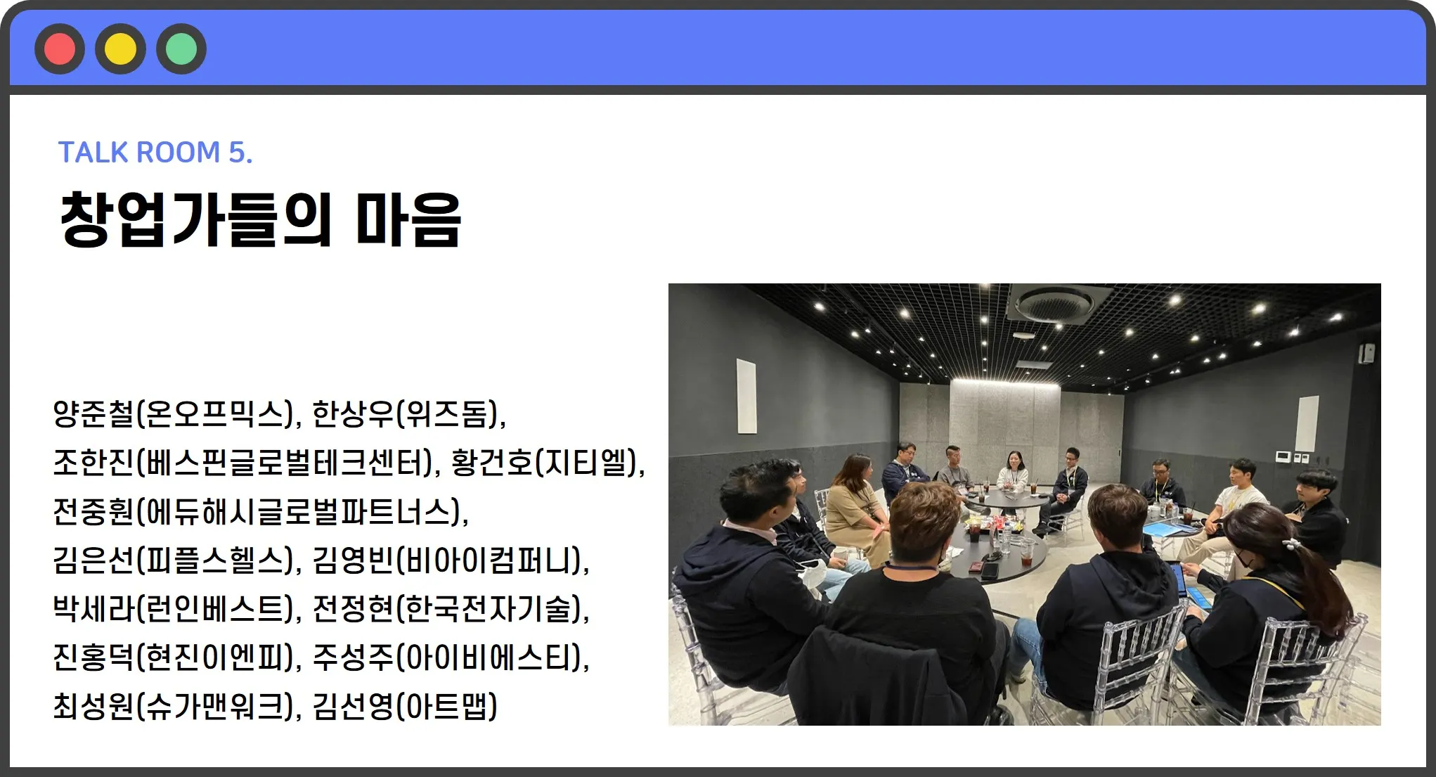 다양한 주제로 펼쳐진 창업가들의 토크룸 어떠셨나요?
