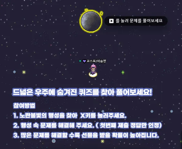 드넓은 우주 속에서 퀴즈를 품고 있는 별을 찾아야 하는 별별퀴즈
