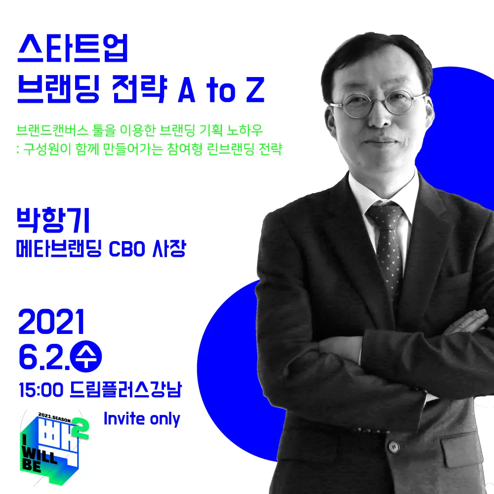 21년 6월 2일, 박항기 메타브랜딩 CBO사장을 연사로 초빙한 '스타트업 마케팅 역량강화 - 브랜딩 편'이 진행되었습니다. '스타트업 브랜딩 전략 A to Z'을 주제로 브랜딩 노하우를 전수 받는 소중한 시간이었는데요.