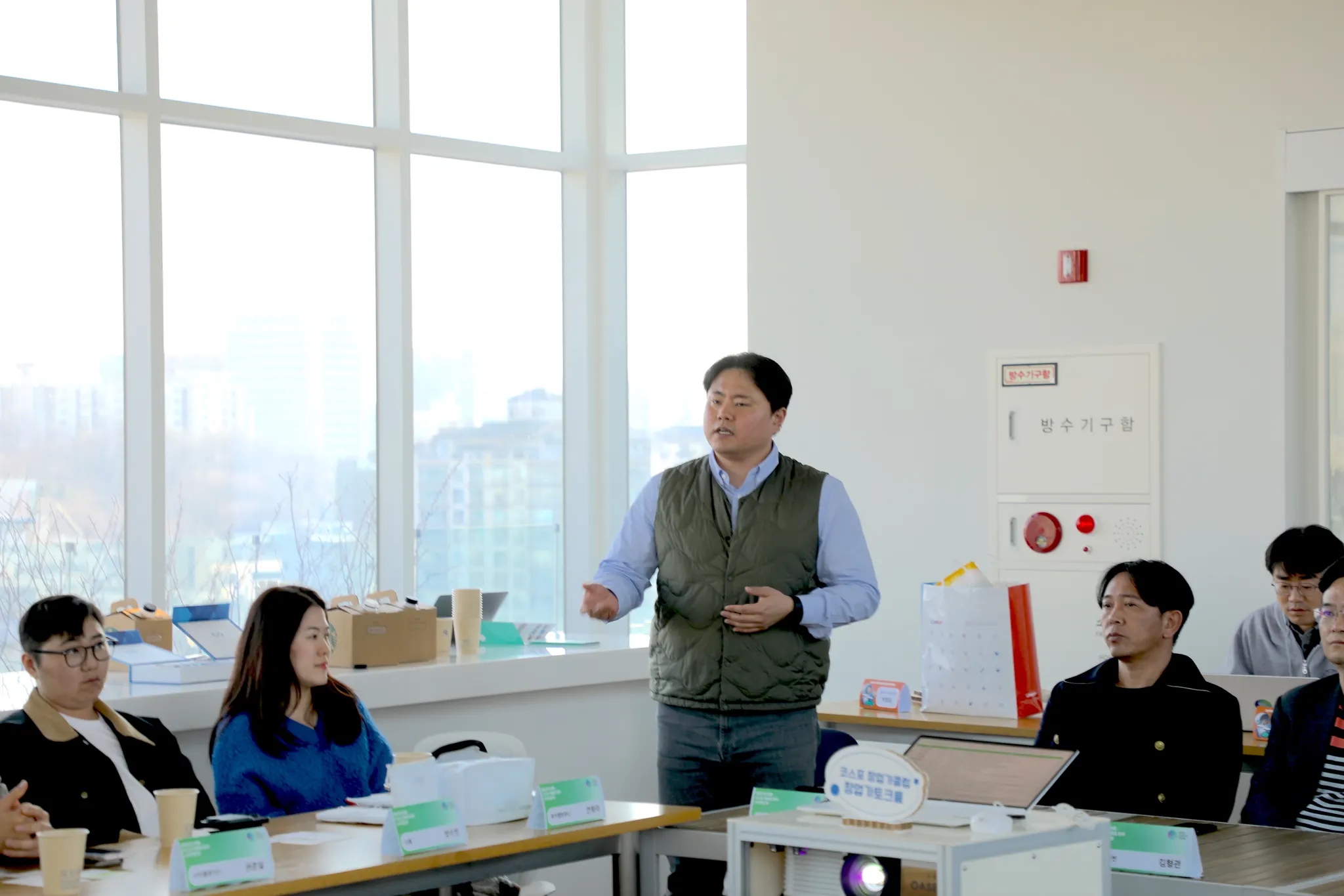 역삼 창업가 거리에 위치한, 마루360에 모인 코스포 창업가들! 코스포 커뮤니티실 박정균 팀장이 모임 취지를 소개하면서 토크룸의 문을 열었어요.