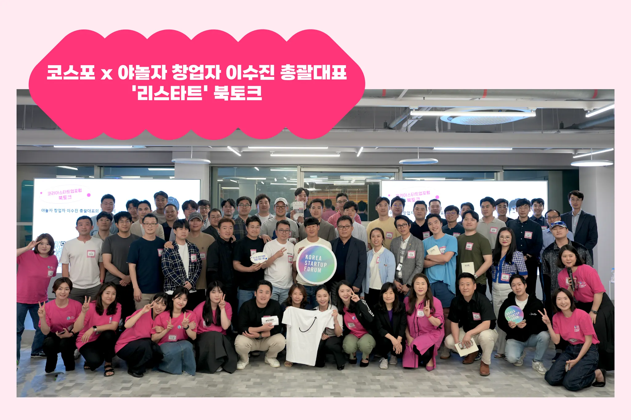 이번 북토크는 코스포의 창업가 성장 커뮤니티 프로그램인 ‘창업가클럽’의 일환으로, 이수진 총괄대표의 저서 ‘리스타트’ 개정판 출간을 기념해 선배 창업가의 경험과 조언을 나누고자 마련된 자리였어요! 현장에는 이수진 총괄대표를 비롯해 권신구 21그램 대표, 김동현 모두의주차장 대표, 오수환 엠디스퀘어 대표, 이효진 에잇퍼센트 대표, 임수열 프렌트립 대표 등 다양한 산업 분야와 성장단계의 스타트업 창업가, 대표, 공동창업자 등 50여 명이 참석해 선후배 창업가 간 경영 인사이트를 논의하며 교류하는 시간을 보냈답니다.