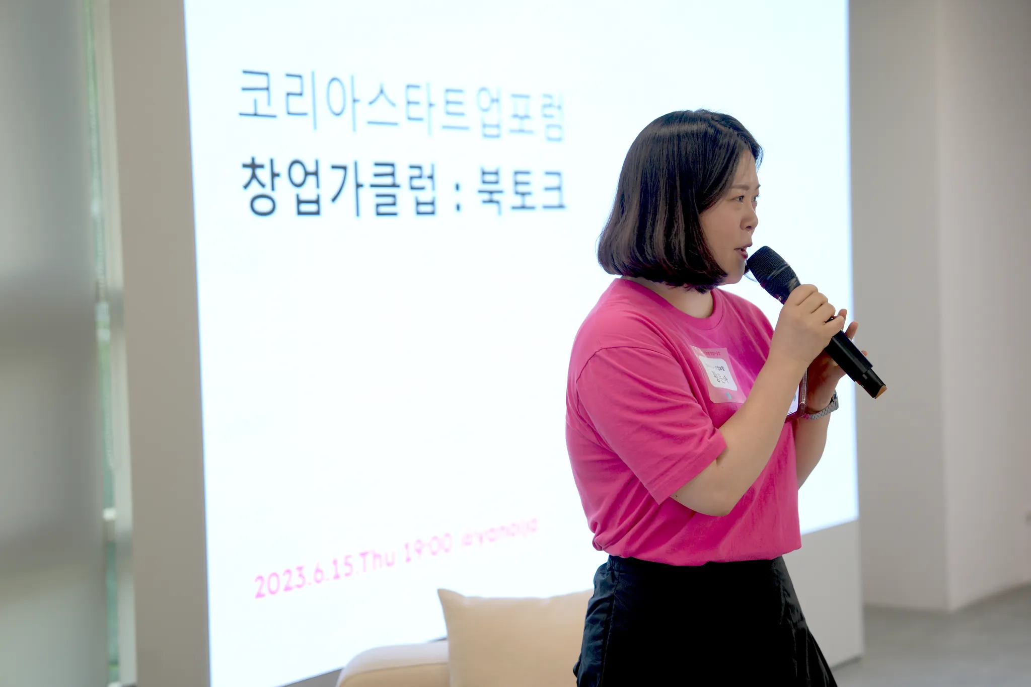 23년 6월 15일, 야놀자 본사에서 야놀자 창업자 이수진 총괄대표와 함께하는 창업가들의 북토크가 열렸습니다.