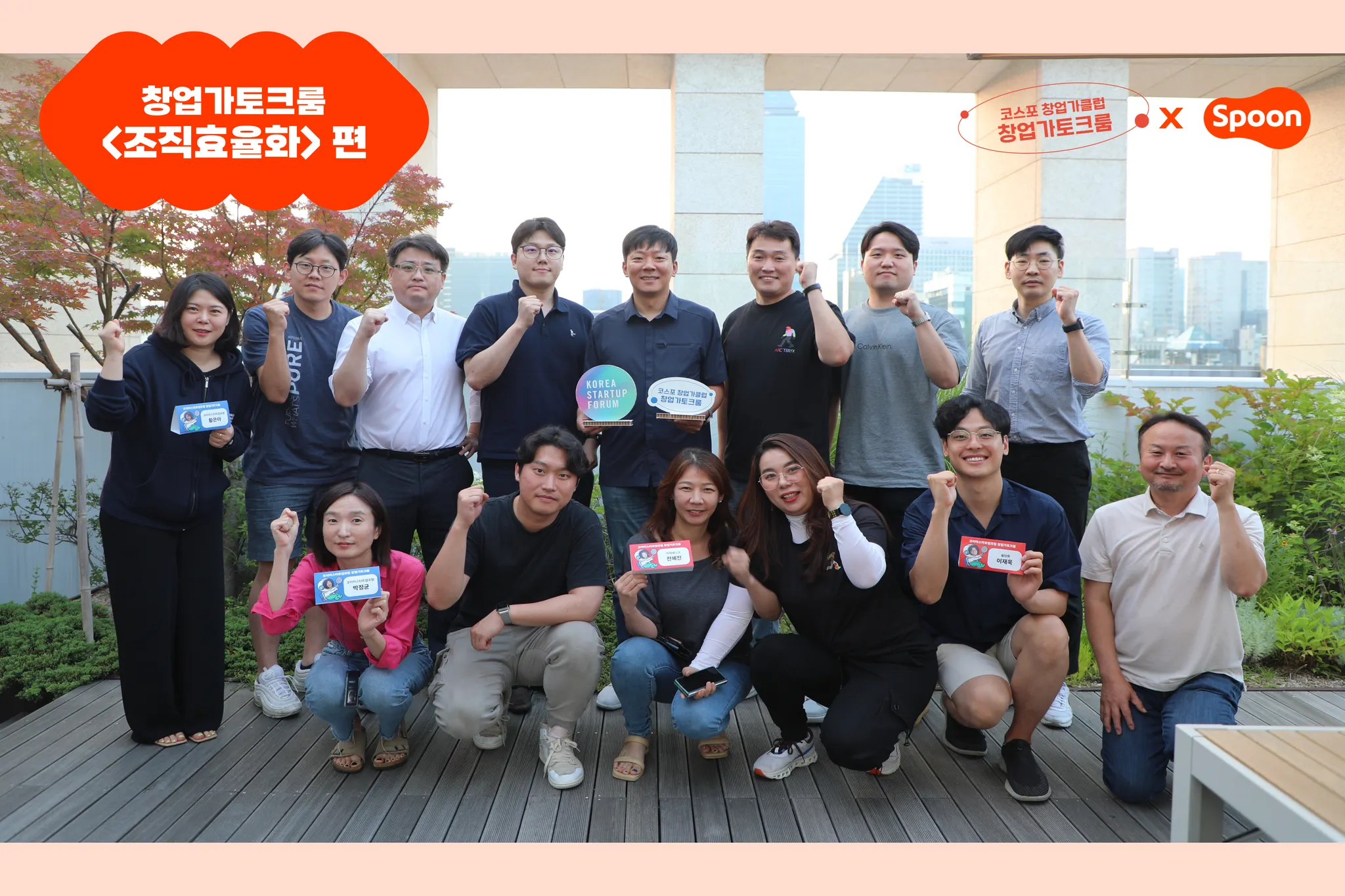 조직효율화를 고민하는 12명의 코스포 스타트업 창업가들이 모였어요. 스푼라디오・이지태스크・타운즈 등