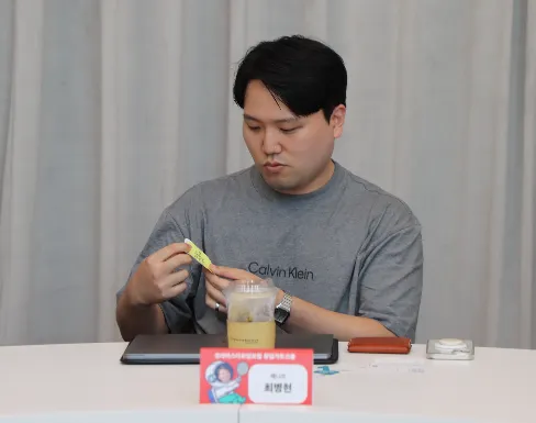 어떤 대답을 할지 고민하는 모습이 보이네요! ㅎㅎ 이 손의 주인공은 스푼라디오 최혁재 대표님 이랍니다!