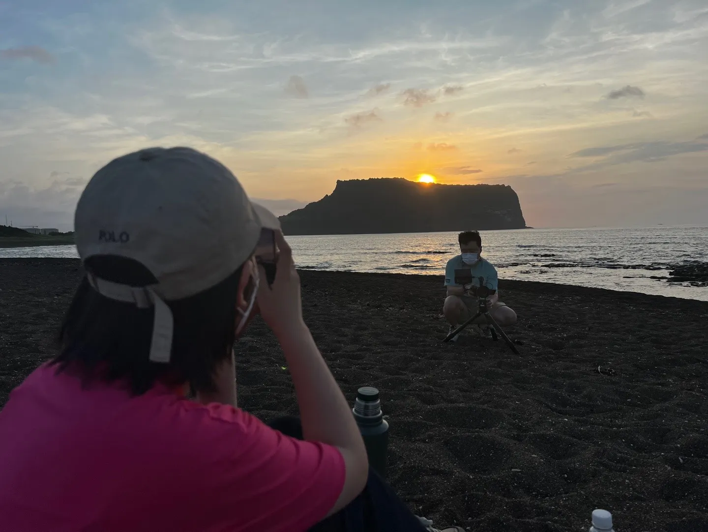 제주 동쪽 해변인 광치기 해변에서 떠오르는 해를 바라보며, 나와 하루를 돌아보고 다짐하는 창업가들의 미라클 모닝 프로그램! 7월 제주의 일출시간은 5:30인데요, 이른 새벽에 일어나 따뜻한 차를 마시며 오붓하게 일출을 감상했습니다.