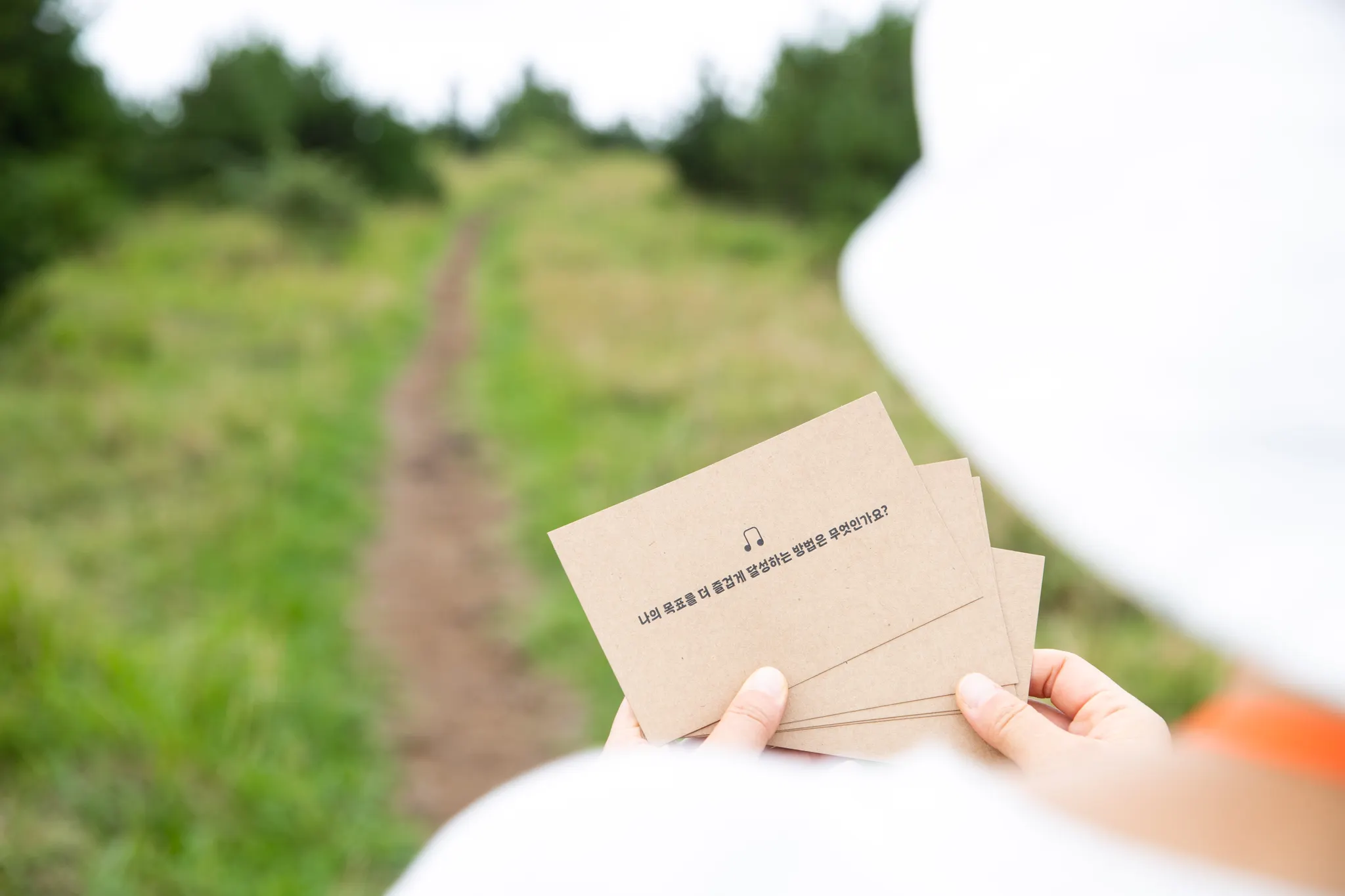 무더운 여름, 아침에 걷는 영감 산책은 송당리에 있는 ‘아부오름'으로 떠났습니다! 오름 설명과 함께 개개인에게 질문 엽서가 배부되었는데요. 각자 오름을 걷고 오르면서 오롯이 사색할 수 있는 질문지가 주어졌어요. 따로 또 같이 걷는 오름 산책. 어떤 현장이었는지 아래의 사진을 참고해주세요!