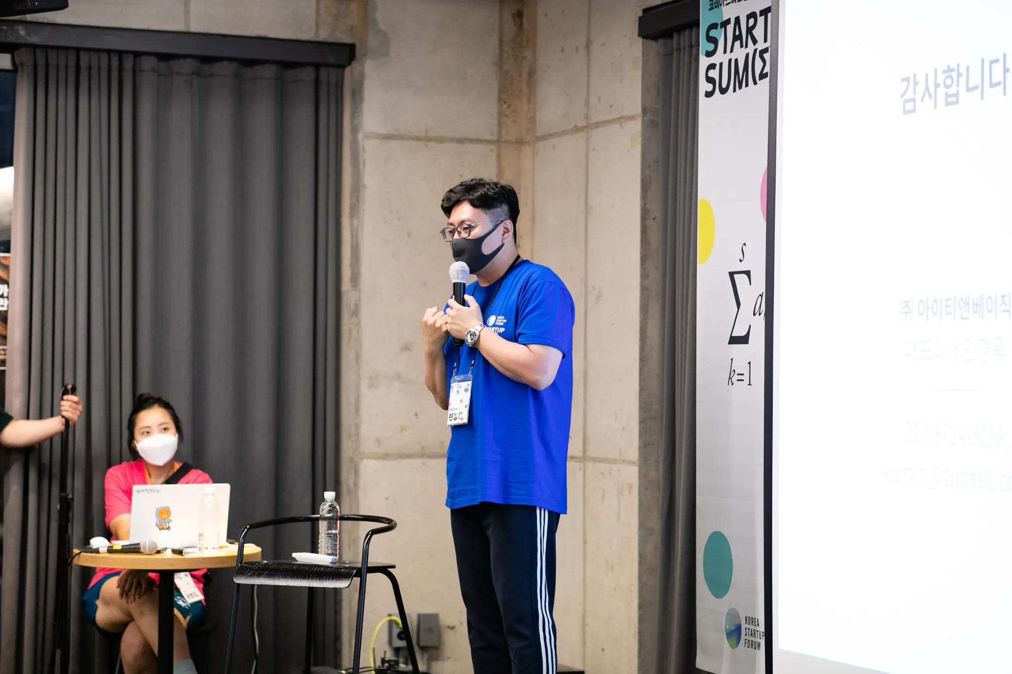 피칭 중인 아이티앤베이직의 민경욱 대표님