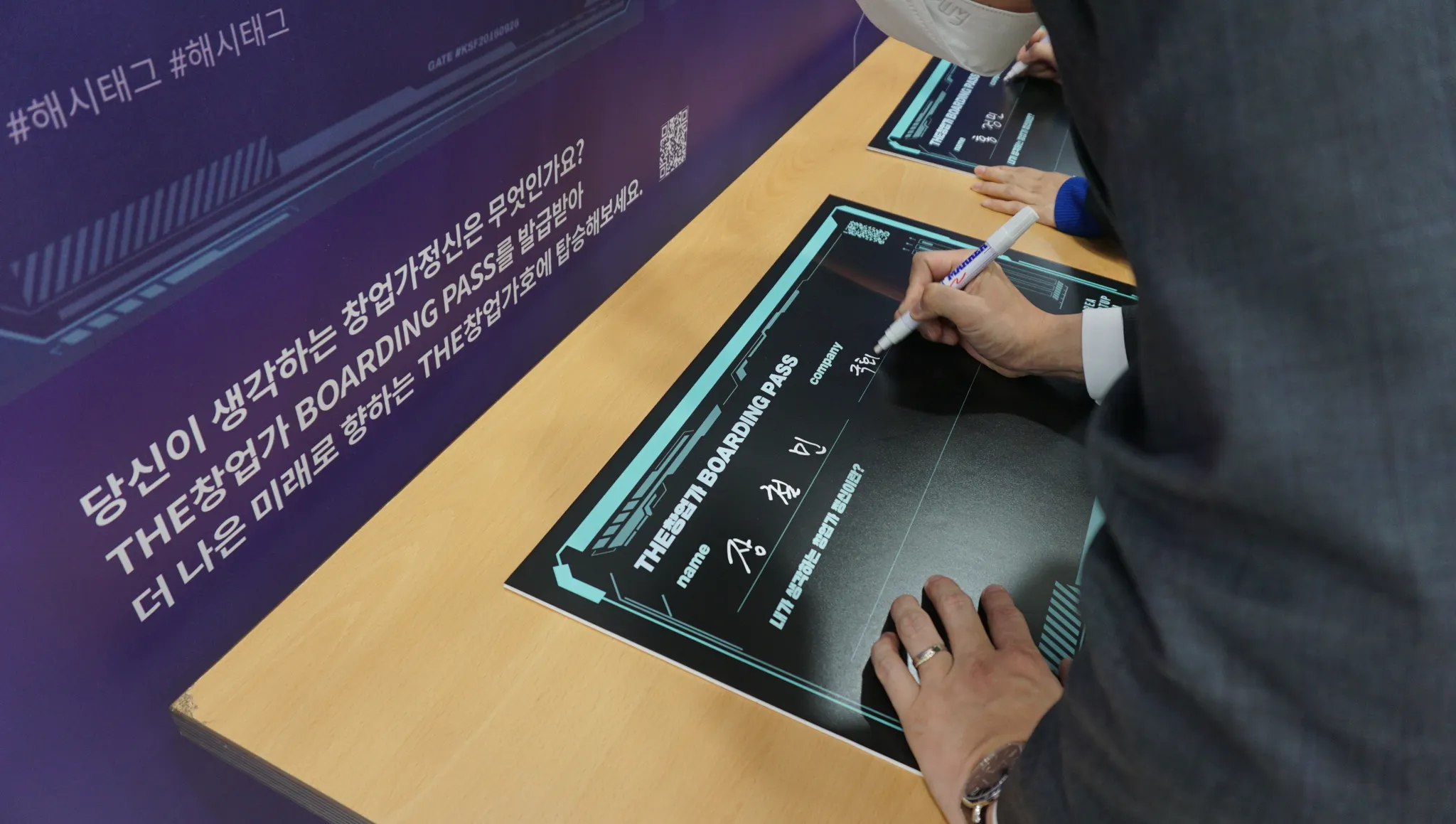 환영사와 축사 이후에는 창업가 BOARDING PASS를 작성하는 세레머니가 진행되었습니다. 행사에 참여해주신 국회의원과 스타트업 창업가들이 생각하는 창업가정신을 직접 보딩패스에 기입하였으며 작성된 BOARDING PASS는 이번 전시를 관람하는 모든 분이 보실 수 있도록 전시되었습니다.